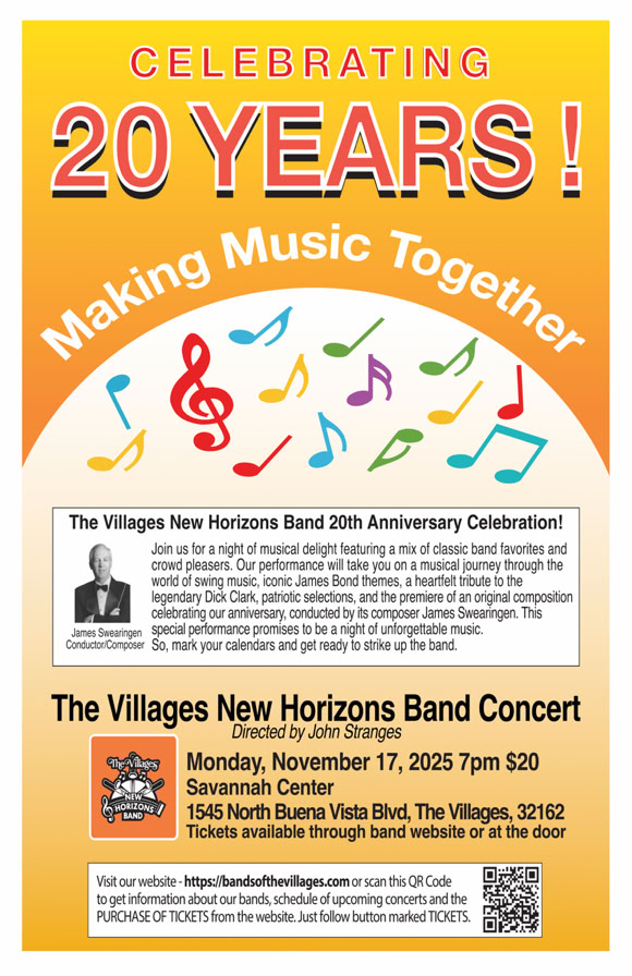 Bands of The Villages is a resident lifestyle volunteer group within the Villages Florida. Consisting of concert bands and ensembles, our musicians perform a wide repertoire of music from classical and jazz to marches and Broadway hits.
