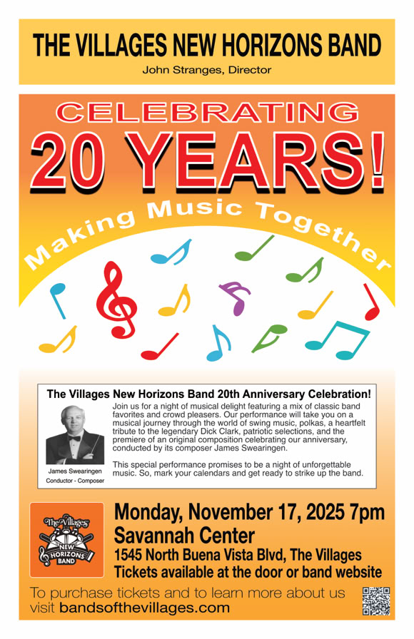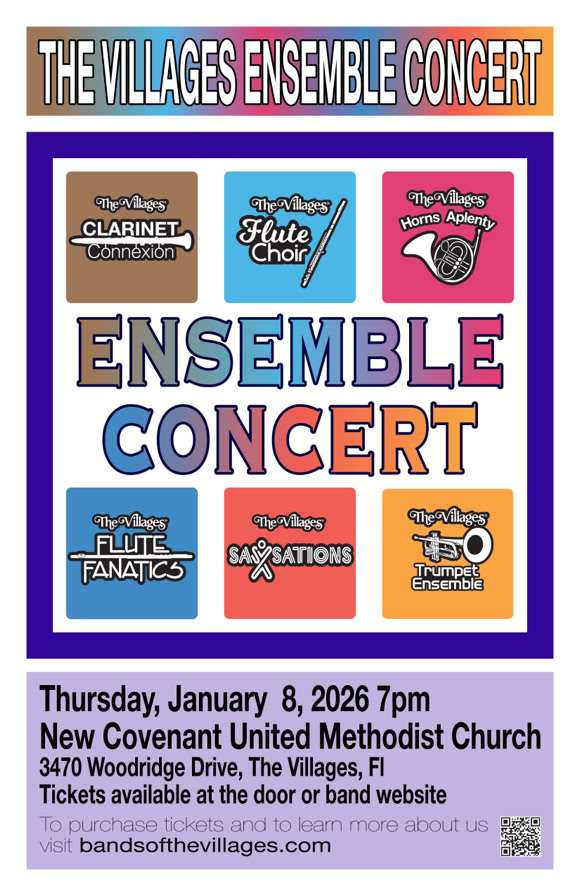 Bands of The Villages is a resident lifestyle volunteer group within the Villages Florida. Consisting of concert bands and ensembles, our musicians perform a wide repertoire of music from classical and jazz to marches and Broadway hits.