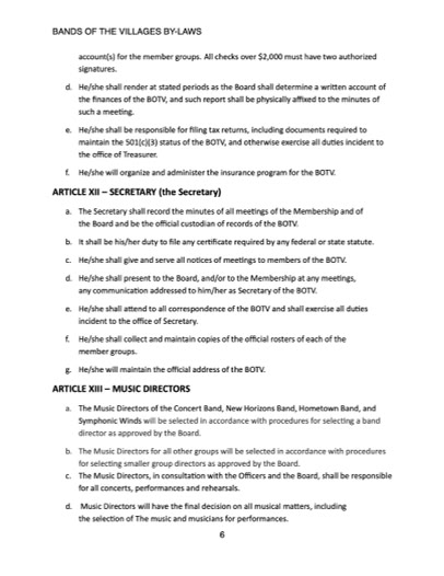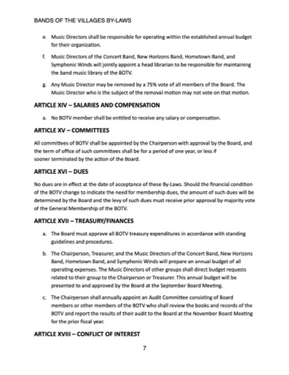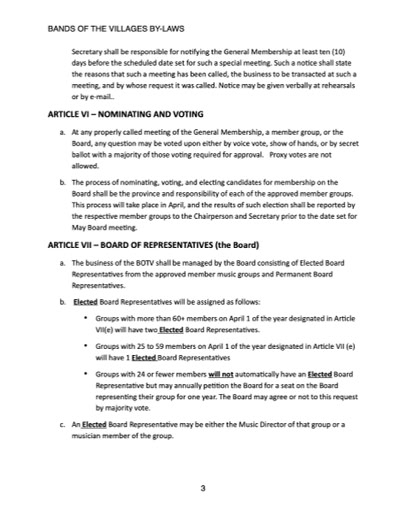 The business of the organization is managed by a Board comprising the music directors and representatives from each of the approved concert bands, groups, or ensembles