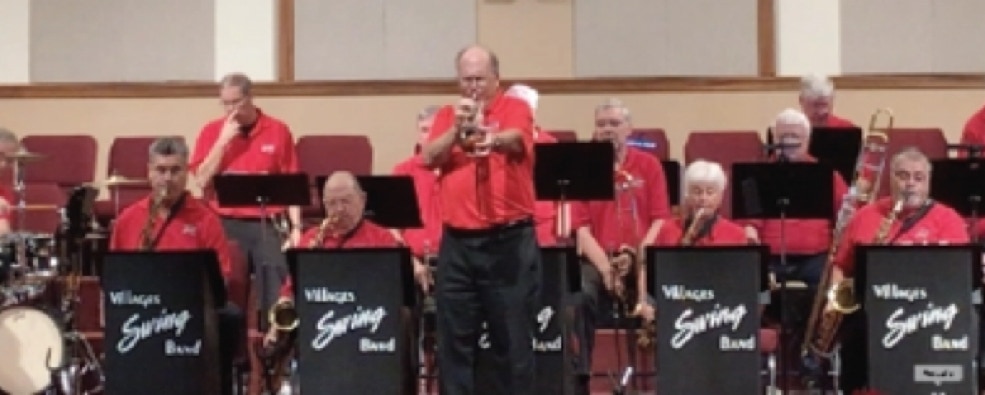 The Villages Swing Band was founded in April 2002 and offers its members the opportunity to play a variety of music while focussing on the music of the Swing Era. The group not only thoroughly enjoys rehearsing together every week, sharing a love for “all things swing,” it also presents public concerts, dances, and other events. The Swing Band falls under the umbrella of The Bands of The Villages.