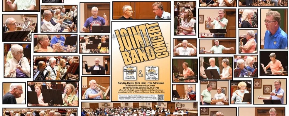 The Villages Hometown Band is comprised of Villages residents with a variety of musical backgrounds, from professional to those who have picked up their instruments after an extended hiatus. The band currently has 97 members and performs concert band music from Broadway, Hollywood, marches and pop classics. The Hometown Band performs at the Savannah Center, throughout The Villages and beyond. The band rehearses Tuesdays from 4-6pm at Mulberry Recreation Center in The Villages, from mid-August through April.
